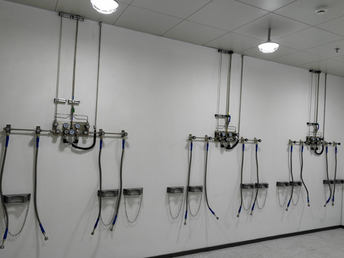7.氣瓶間內存儲的氣瓶分為帶防倒鏈的氣瓶之架固定的,氣瓶之架堅硬結實、牢固美觀。氣瓶之架分為鋁材材料設計制作而成。